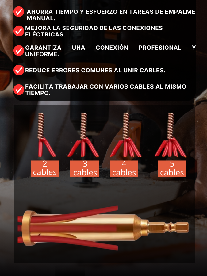 El combo incluye: 1 empalmador de cables de torsión + 1 extensor flexible para taladro totalmente gratis.