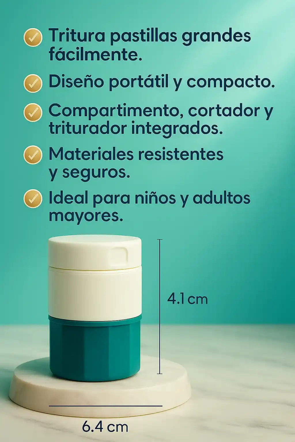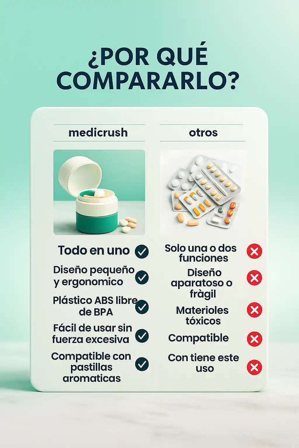Sí, el vaso triturador está diseñado con cuchillas de acero inoxidable que convierten incluso las pastillas más duras en polvo fino, sin esfuerzo.