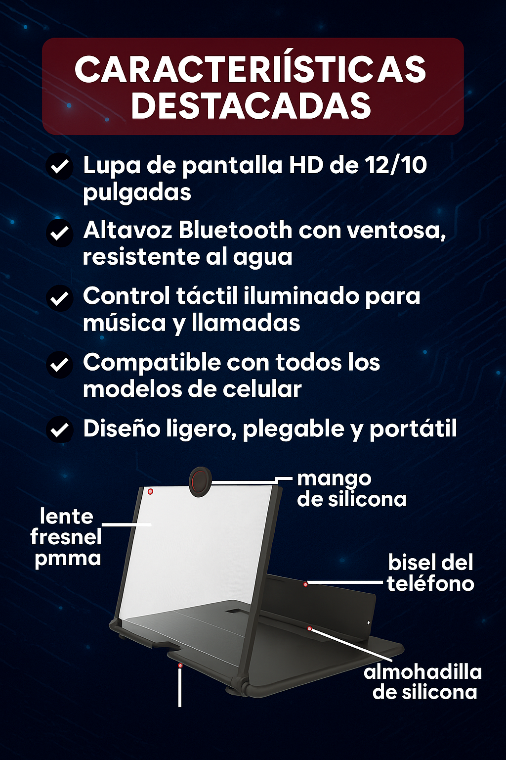 No. Solo se conecta el altavoz vía Bluetooth; la pantalla es una lupa