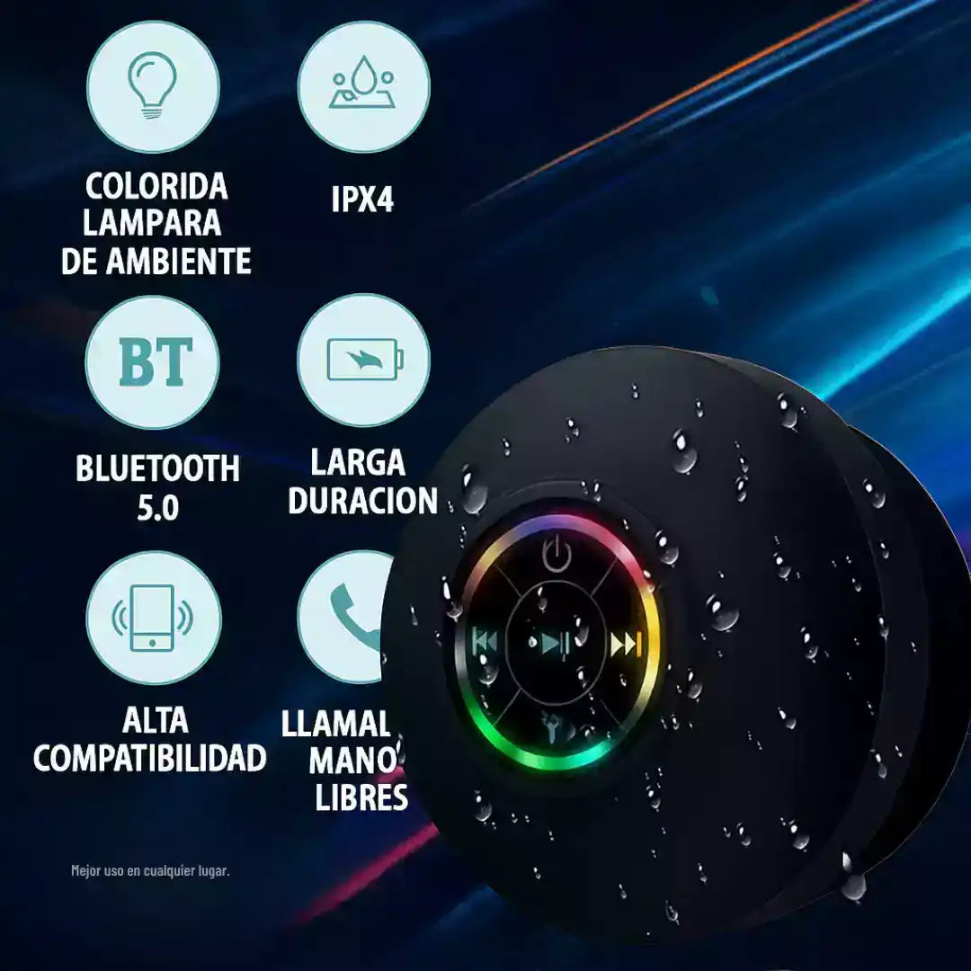 Es impermeable y tiene ventosa para pegar en duchas, ventanas o mesas.