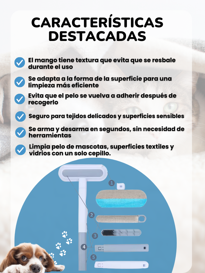Sí, funciona para pelos de gatos, perros y otras mascotas que suelten pelaje. Su sistema de cerdas y goma atrapa hasta los pelos más finos sin dañar las superficies.