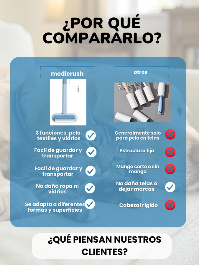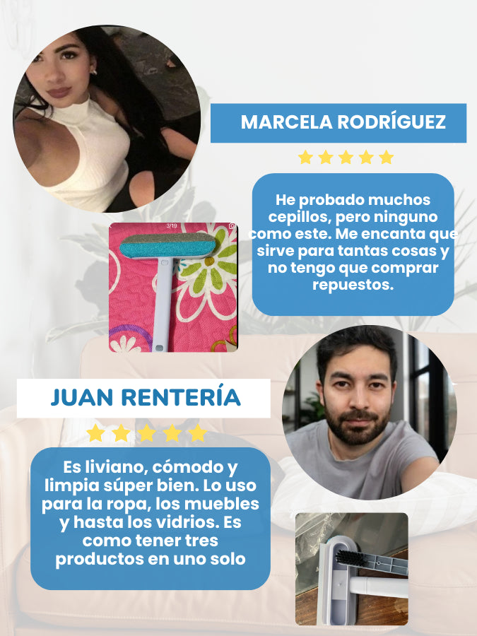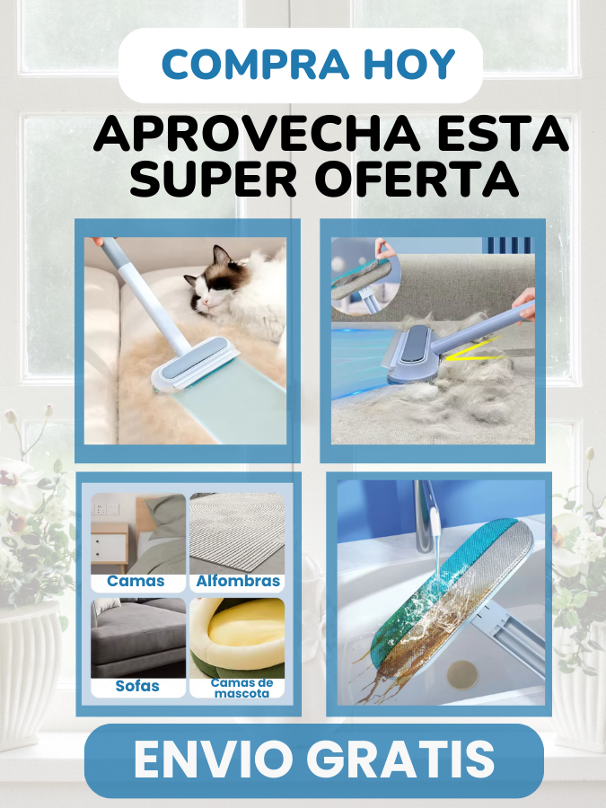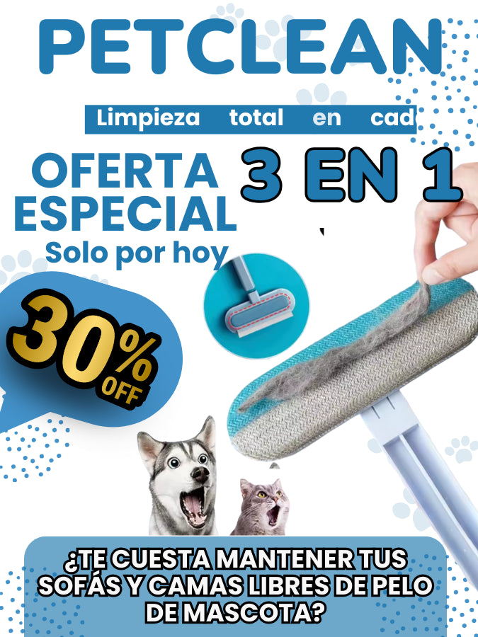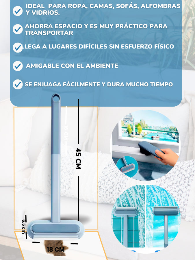 PetClean 3 en 1 está diseñado para limpiar pelos y pelusas en ropa, muebles, camas, alfombras, cortinas e incluso ventanas gracias a su cabezal multifuncional. Funciona tanto en telas como en superficies lisas