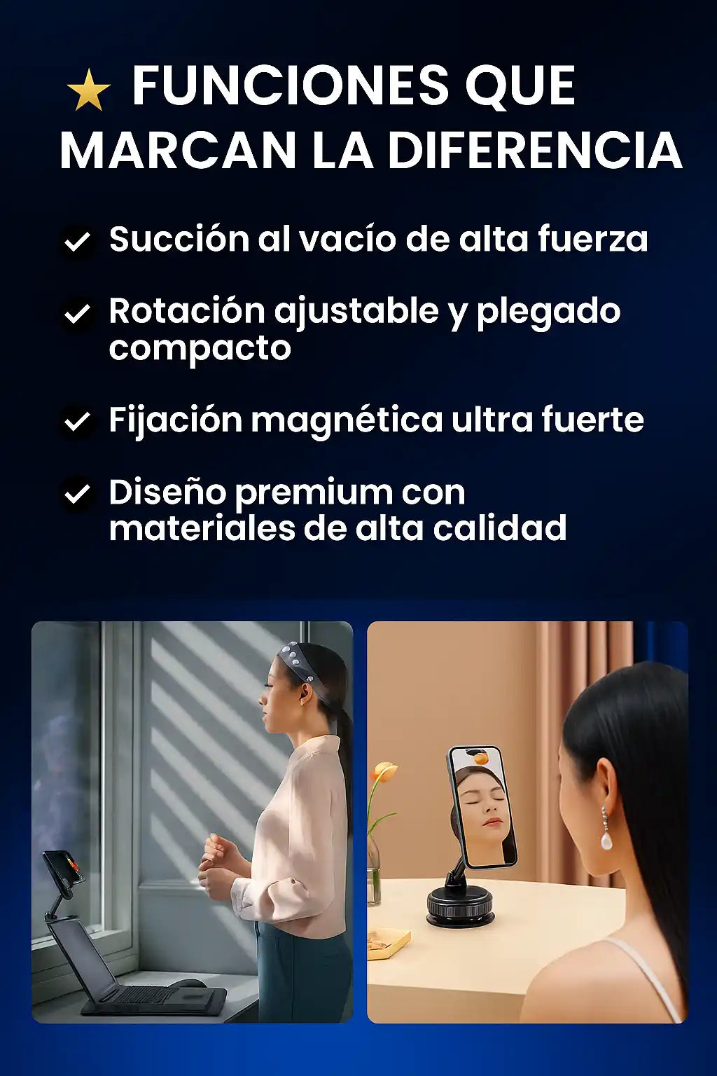 Tiene succión al vacío real. Si la superficie está limpia, no se cae.